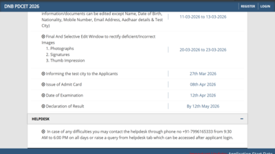 DNB PDCET admit card 2026: The National Board of Examinations in Medical Sciences (NBEMS) has declared the admit card for the Diplomate of National Board Post Diploma Centralised Entrance Test (DNB PDCET). The entrance test will take place on April 12, 2026. Individuals applying for the entrance test can access their hall tickets via the official NBEMS website. It is advisable that students download the hall ticket ahead of time to prevent technical difficulties.The hall ticket can be downloaded from the official website of NBEMS. Applicants are required to enter their login details, such as username and password, to view the admit card. The test will be conducted to establish whether one qualifies to join different post-diploma DNB courses offered at recognised institutions.The test papers will comprise MCQs aimed at assessing candidates’ proficiency in their respective fields. The entrance exam will be in English.Each question will have a single correct answer, and candidates will be required to select the most appropriate option. Detailed marking schemes and subject-wise weightage have been outlined in the official information bulletin. Once downloaded, aspirants are advised to carefully verify all details mentioned on the admit card, such as their name, roll number, exam centre, and reporting time. Any discrepancy should be reported immediately to the examination authorities.