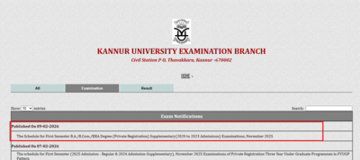 Kannur University has released an official notification regarding the First Semester BA, BCom and BBA Degree examinations under Private Registration. The schedule is for Supplementary candidates from 2020 to 2023 admissions. The examinations relate to the November 2025 session. The university has published the official timetable for these candidates along with earlier announcements for FYUG first semester exams. Students registered under the private stream and appearing for backlog papers must check the detailed schedule on the official website. The notification has been issued by the Examination Section and is now available online.Check official notice issued by Kannur University here.