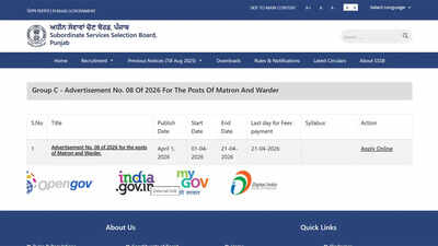 PSSSB recruitment 2026: The application window for Punjab Subordinate Services Selection Board recruitment for jail warder and matron posts closes today, April 21, 2026, marking the final opportunity for eligible candidates to submit forms online. The drive is being conducted under Advertisement No. 08/2026 for posts in the Punjab Prisons Department.This recruitment process will be conducted to fill up a total of 532 vacancies comprising 475 posts for warders and 57 posts for matrons respectively. This recruitment process is managed under the jurisdiction of the Additional Director General of Police, Prisons, Punjab. Short notice regarding the recruitment process was published prior to the announcement of detailed notice and opening of the application link.Detailed vacancy information and eligibility conditionsApplicants applying for these vacancies should be graduates of class 12 with knowledge of Punjabi in Class 10. The minimum age of applicants should not exceed 27 years, whereas the maximum age should not be less than 18 years, with a reference date of January 1, 2026.The pay range for selected candidates will be Rs 19,900 -Rs 63,200 at Level-2. Direct link to apply online for the PSSSB Punjab prison department recruitment 2026Process of application and payment feesThe application process started from April 1, 2026, and it is totally done online at the official website of the PSSSB. All the candidates have to register themselves, fill the form, upload documents, and make payment according to the fee.The fee is different for different categories. For general, freedom fighter, and sports category, the applicants are asked to pay Rs 1,000 each. Candidates of SC, BC, and EWS categories will have to pay Rs 250, and ex-servicemen and their families have to pay Rs 200. People who suffer from disabilities have to pay Rs 500.Process of Selection and Various Stages InvolvedThe process of selection comprises several stages, starting from an online test. The applicants that are successful at this stage will be able to appear in the Physical Efficiency Test and Physical Standards Test.Other stages comprise documents verification and medical test. Candidates that clear all the stages mentioned above can get selected under the Punjab Prisons Department.Those applicants that have not yet submitted their applications need to submit them within the stipulated time as no offline applications have been announced.