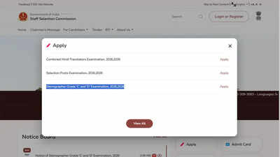 SSC stenographer 2026: The Staff Selection Commission has released the notification for the Stenographer Grade C and D Examination 2026, with the online application process commencing on April 24. The recruitment drive will fill posts across ministries, departments, organisations and their attached and subordinate offices of the Government of India.According to the schedule, candidates can submit applications until May 15, while the deadline for fee payment is May 16. A correction window will remain available from May 20 to May 21, and the computer based examination is scheduled to be conducted between July and August 2026.Application process and key datesApplications are to be submitted only through the official SSC website or the mobile application. The last date and time for submission is 23:00 hrs on May 15, and candidates are advised to complete the process early to avoid last minute technical issues due to heavy traffic.Candidates must complete one time registration on the new portal, as earlier registrations on the previous platform will not remain valid. The Commission has also encouraged applicants to opt for Aadhaar based authentication to simplify verification requirements during the examination process.Important dates for SSC stenographer Grade C and D examination 2026